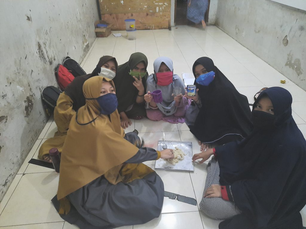 Rasa jenuh pun menghampiri para santri, namun itu bisa segera diatasi dengan diadakannya kegiatan El- Huffadz Fun Cooking oleh Ustadzah. Dr. Nurul Hikmah, M.A. Kegiatan ini sungguh sangat bisa mengalihkan rasa jenuh para santri sekaligus menghibur, dan yang pastinya banyak ilmu baru yang di dapatkan oleh para santri dari kegiatan ini. Berikut ini adalah hasil potret yang diabadikan saat kegiatan El-Huffadz Fun Cooking sedang berlangsung.