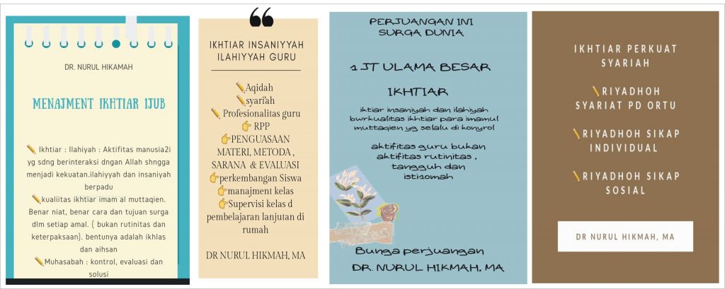 π‘Ikhtiar Insaniyah Ilahiyah : sebuah proses untuk mencapai sesuatu, perpaduan, kekuatan manusia dan Allah, dalam sebuah proses mencapai cita-cita. π‘Seperti apa contohnya: berupaya semaksimal mungkin yang bisa manusia lakukan dan menyertakan Allah disetiap langkahnya dengan do’a dan tawakkal, semata-mata mengharap ridho Allah semata.