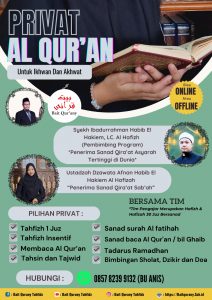 Mengaji dan menghafal Al-Qur’an merupakan ibadah mulia yang memiliki keutamaan luar biasa. Program privat Al-Qur’an ini hadir sebagai solusi bagi Anda yang ingin mendalami Al-Qur’an dengan bimbingan para ahli. Kami menawarkan kesempatan langka untuk belajar langsung dari para ustadz dan ustadzah berpengalaman dan berkompeten di bidangnya, baik bagi ikhwan maupun akhwat.